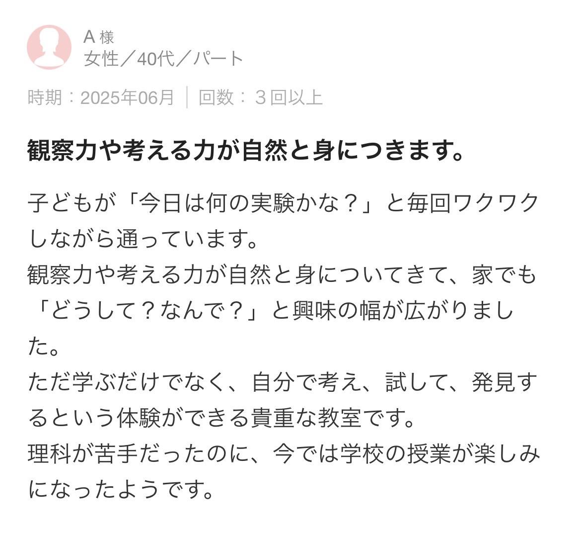 「わが子の未来に、本物の科学教育を」と考えるご家庭だけに開かれた学びです。
